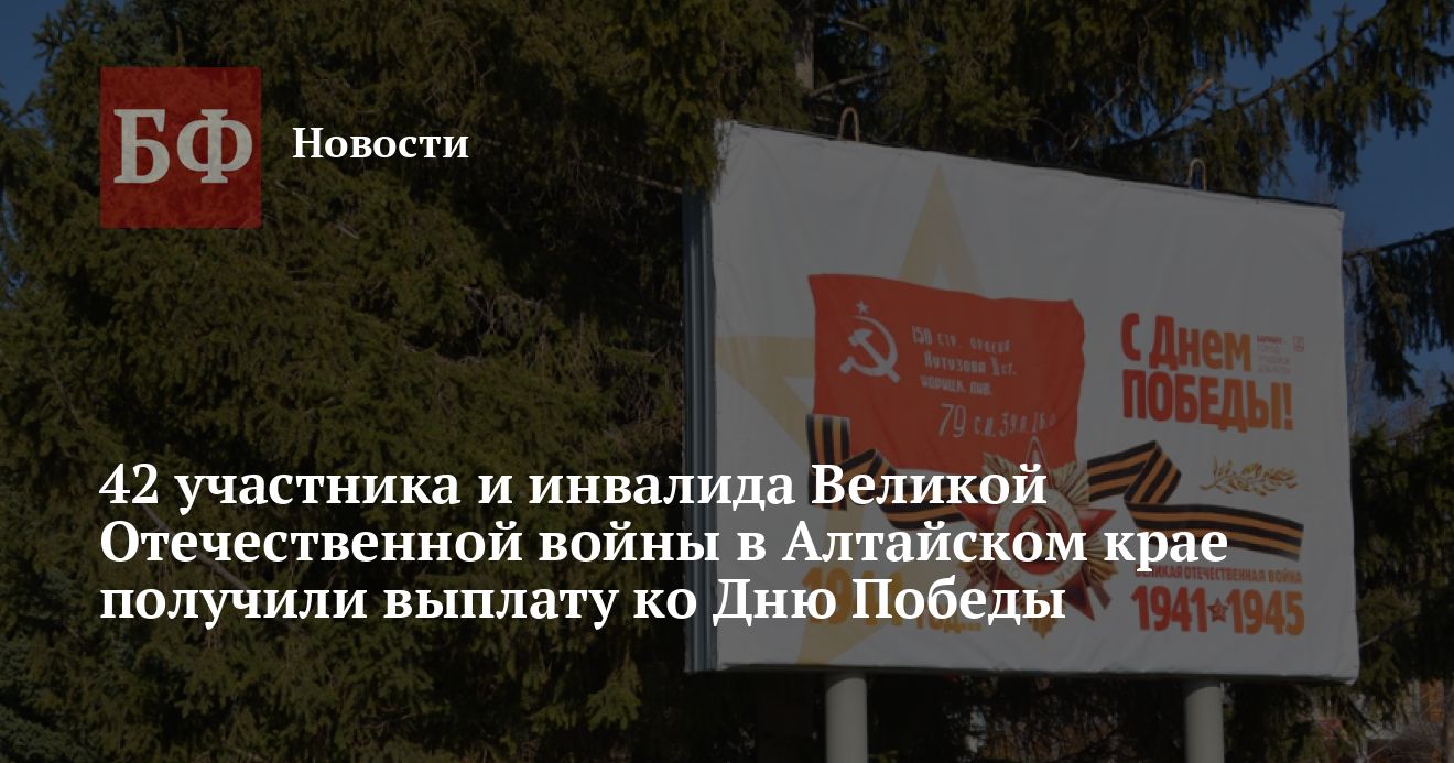 Участникам и инвалидам Великой Отечественной войны перечислили выплату ко Дню Победы. В Алтайском крае ее получателями стали 42 человека, сообщило региональное отделение Социального фонда России.