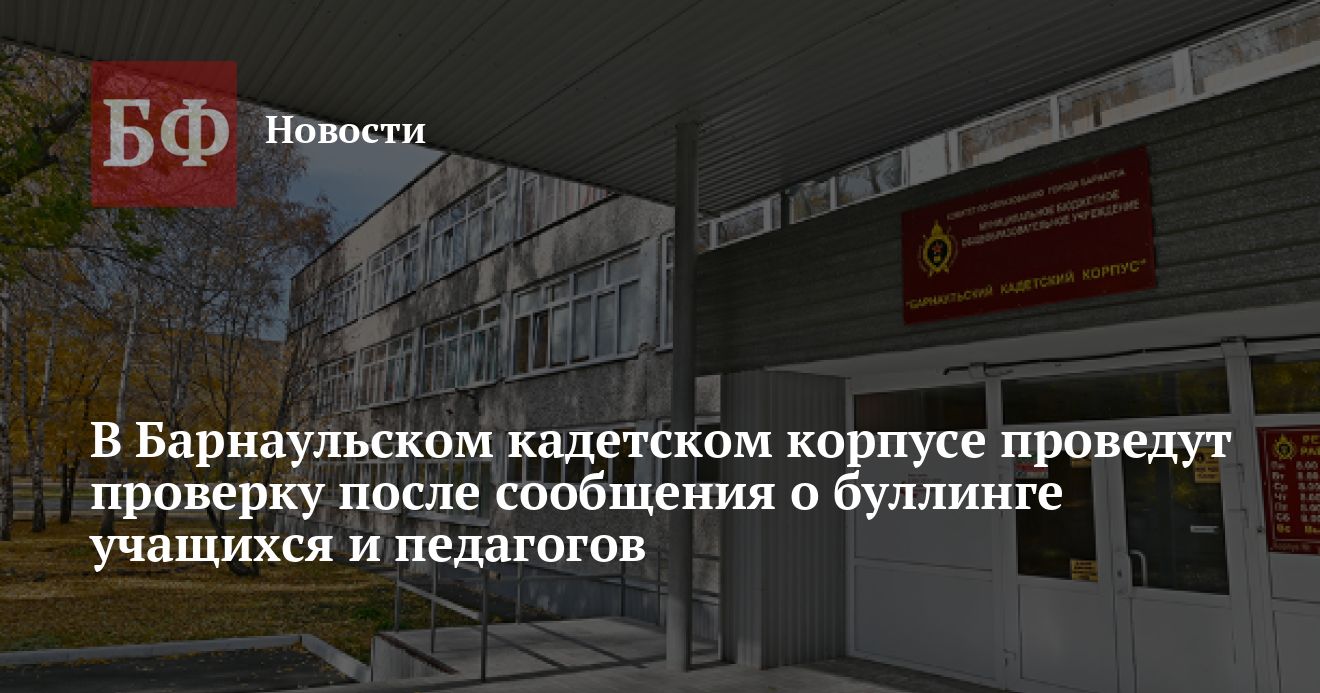 Комитет по образованию проведет проверку в Барнаульском кадетском корпусе, сообщили в МЦУ города. Поводом для этого стала публикация в соцсетях о буллинге в отношении одного из учеников. По словам автора поста, кадеты позволяют себе издевательства не только над ровесниками, но и над педагогами.