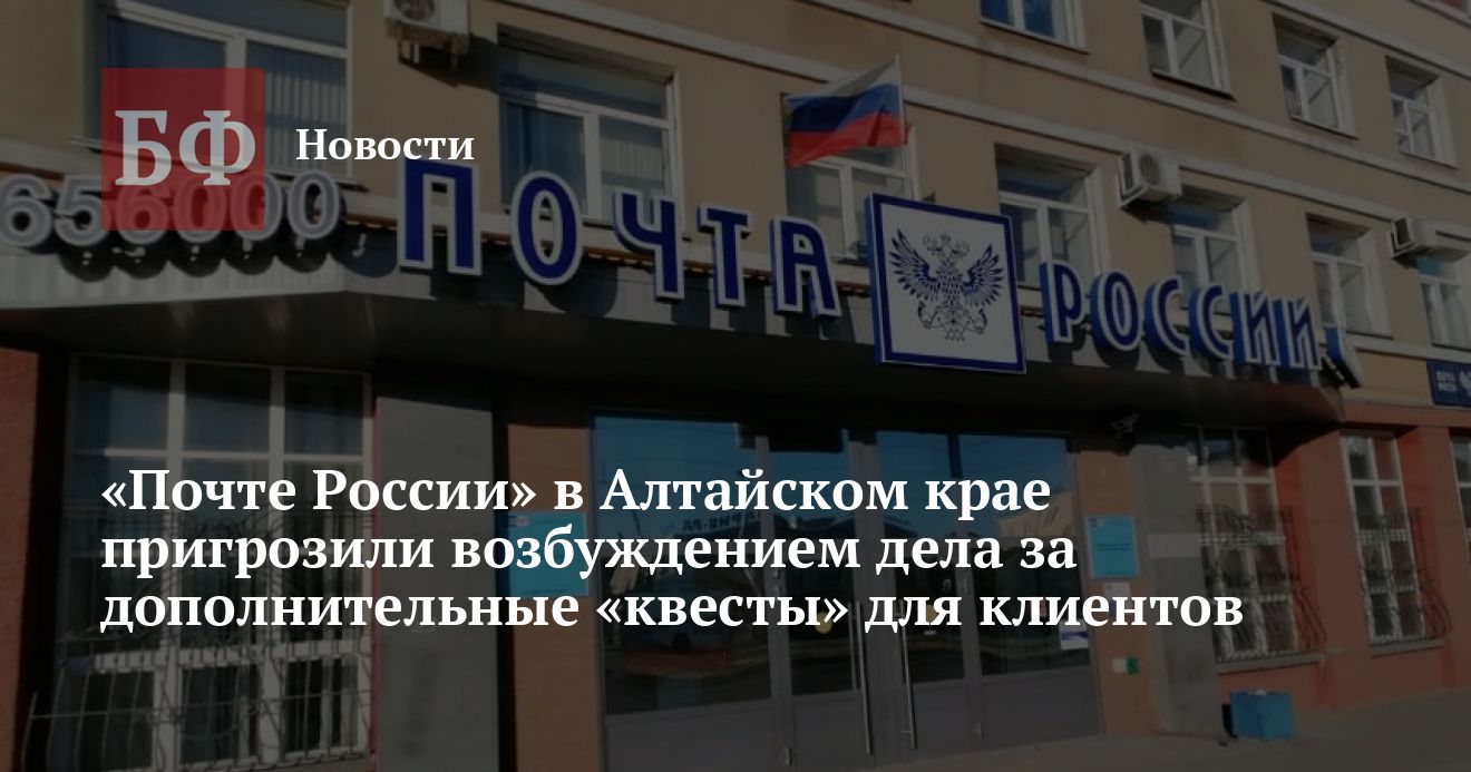 Как пояснили в алтайском управлении ФАС, на безосновательные требования почтовых отделений жаловались жители региона и компании. Операторы отказывались принимать у них к отправке заказные письма, если они самостоятельно не оформляли предварительное отправление в личном кабинете на сайте «Почты России».