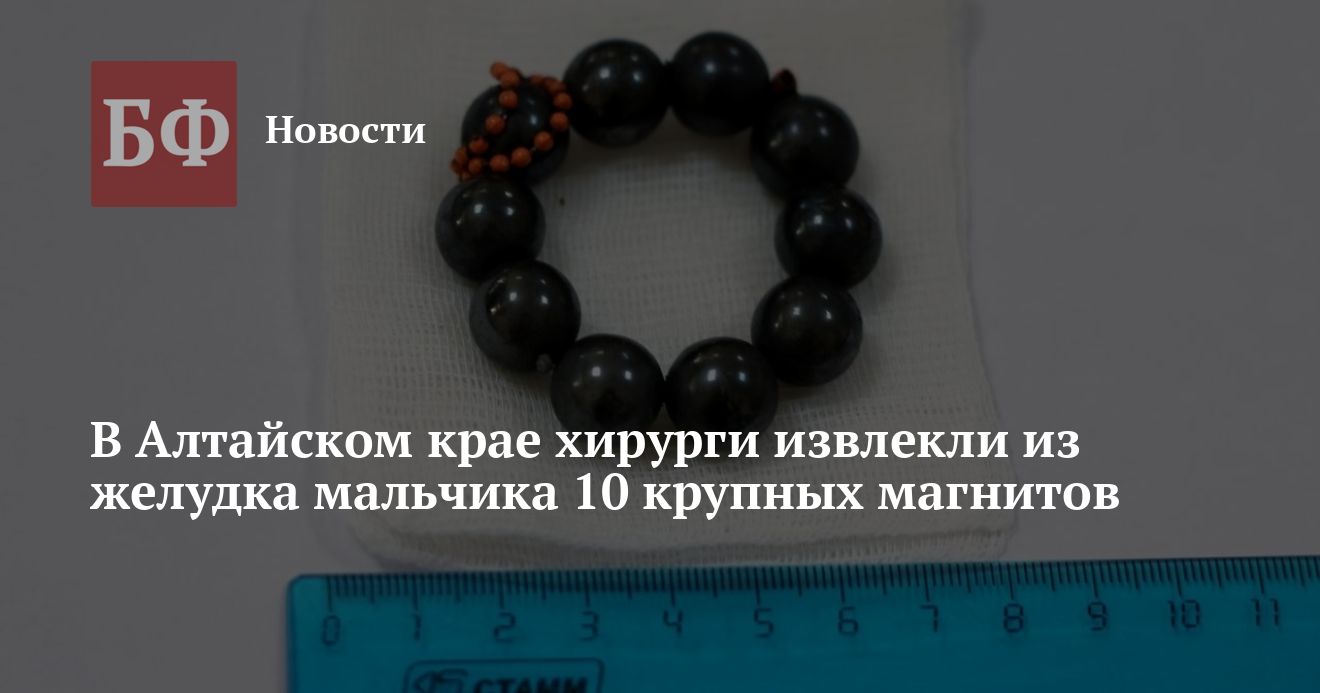 В детской городской клинической больнице № 7 Барнаула хирурги прооперировали 10-летнего мальчика из Крутихинского района. Из желудка ребенка извлекли 10 крупных магнитов и металлическую цепочку от брелока, сообщили в медучреждении.