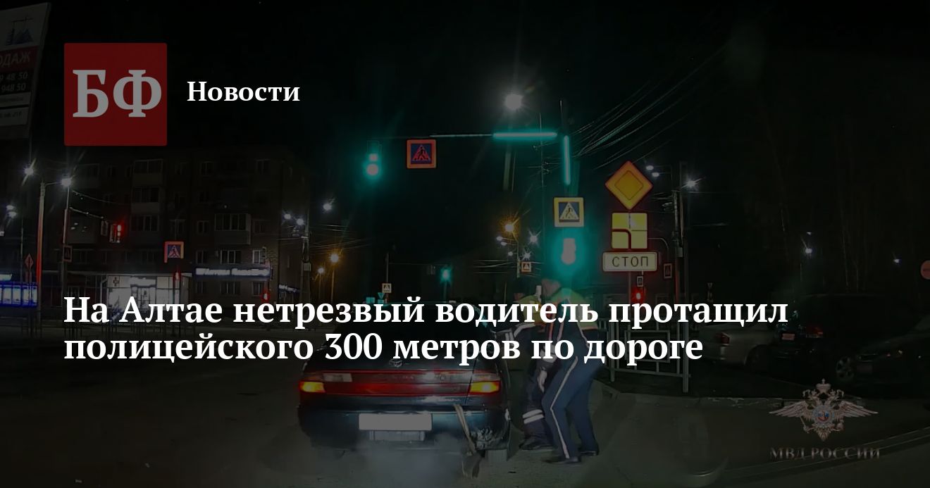 В Республике Алтай полицейские задержали нетрезвого водителя, который протащил госавтоинспектора более 300 м по асфальту. Сотрудник правопорядка получил травмы, когда иномарка врезалась в бордюр, сообщила официальный представитель МВД РФ Ирина Волк в своем Telegram-канале.