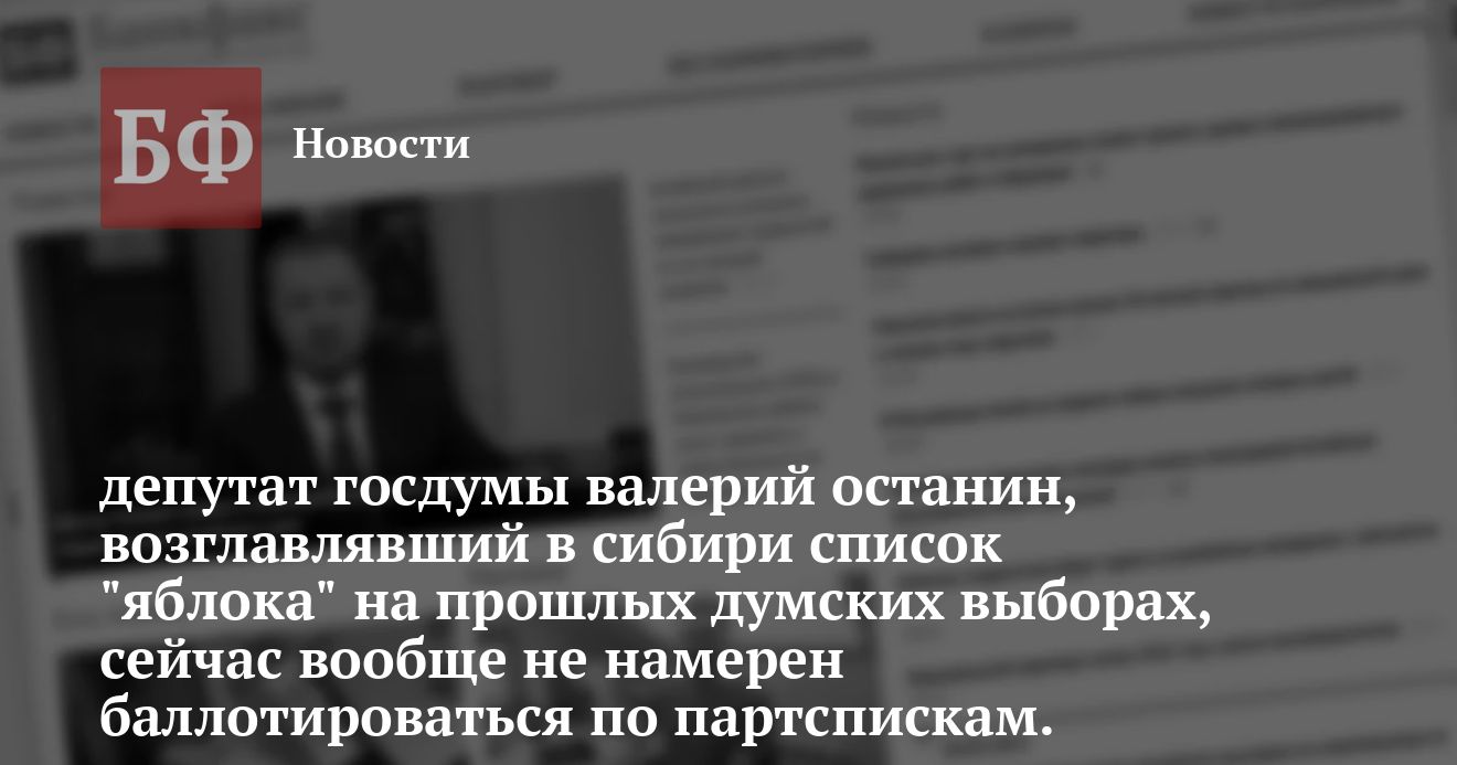 депутат госдумы валерий останин, возглавлявший в сибири список «яблока» на прошлых думских выборах, сейчас вообще не намерен баллотироваться по партспискам.