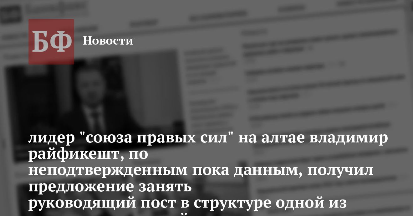 региональной организации СПС Владимир Райфикешт. По неподтвержденным пока официально данным, в ходе встреч в Москве с руководством РАО ЕЭС ему было предложено занять руководящий пост