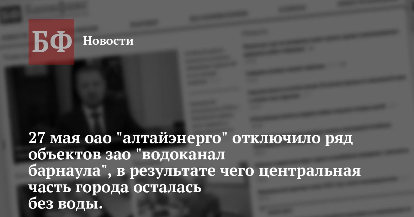 сброс неочищенных сточных вод в реки Барнаулку и Пивоварку. В концу рабочего дня водоснабжение было восстановлено, однако ни Водоканал, ни энергетики, ни мэрия пока никак не прокомментировали эту ситуацию.