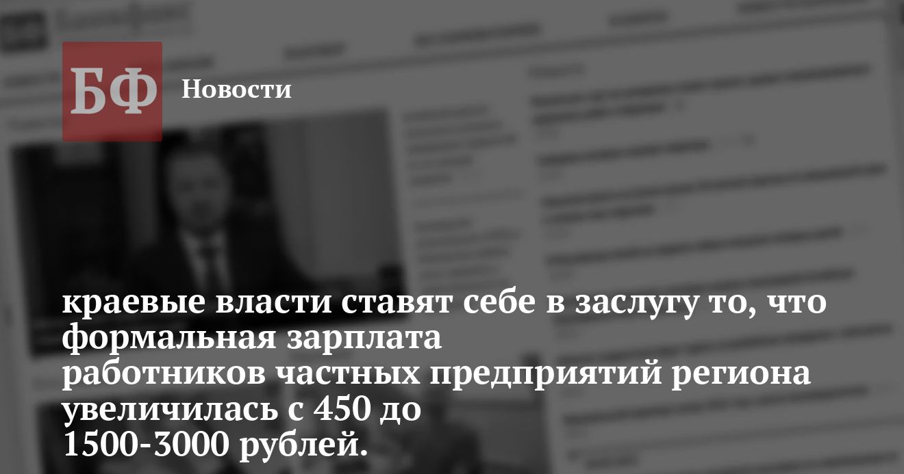 вывести из тени зарплату работников частных предприятий, в результате она выросла с 450 до 1500−3000 рублей. Но, несмотря на некоторые успехи, в 11 районах края долги превышают 20-миллионную