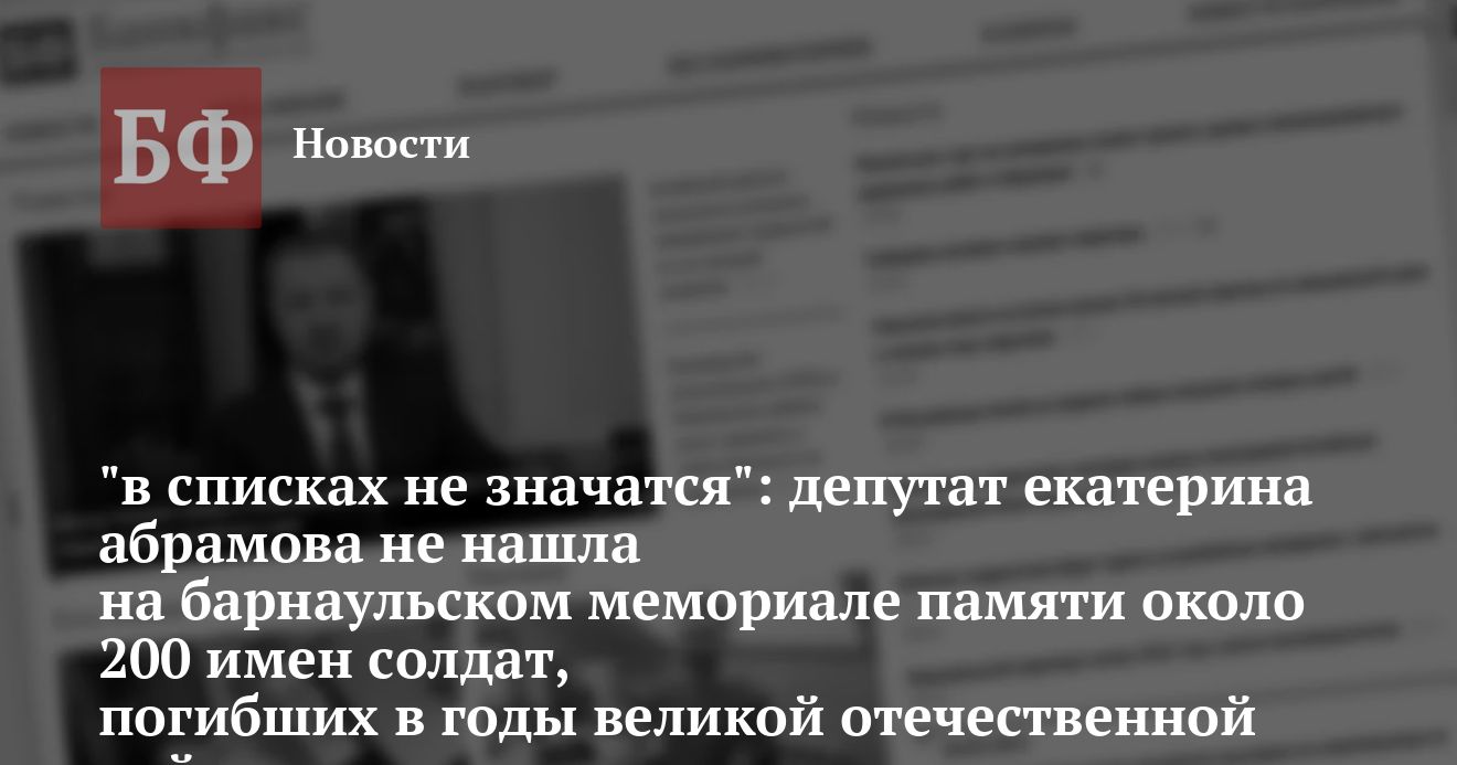 Абрамовой в Международной вахте памяти, проходившей на днях в Новгороде. В частности, из Новгорода депутат привезла список из 710 имен погибших в годы ВОВ алтайских солдат и офицеров, останки