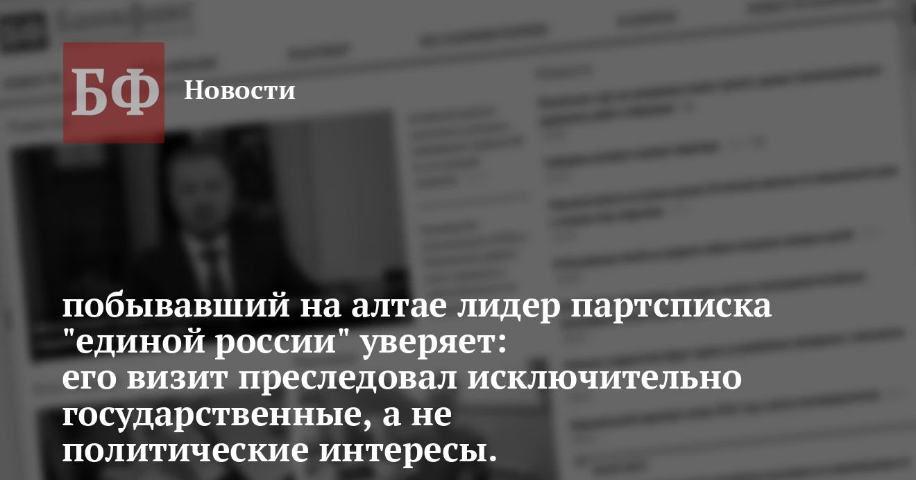 побывавший на алтае лидер партсписка «единой россии» уверяет: его визит преследовал исключительно государственные, а не политические интересы.