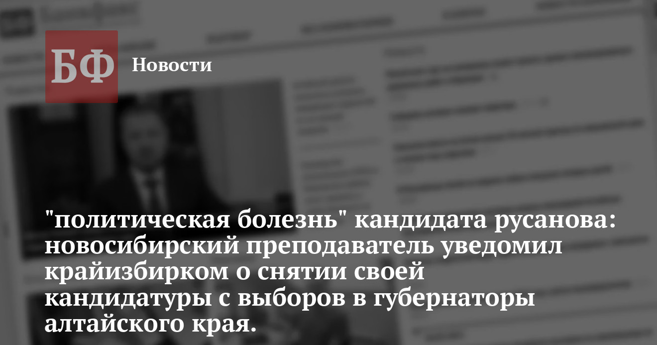 Агафонова, 4 марта крайизбирком получил уведомление кандидата в губернаторы Алтайского края Александра Русанова об его отказе