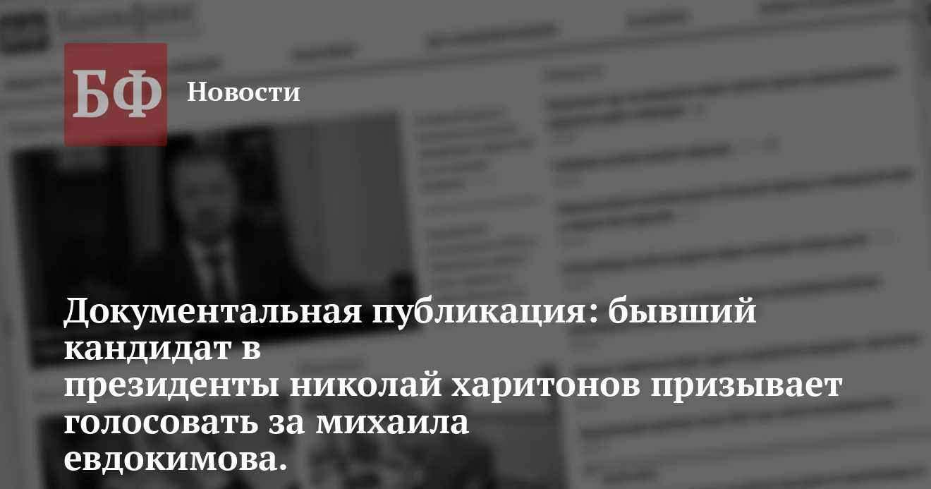 Николая Харитонова, выразившего поддержку Евдокимову. Учитывая