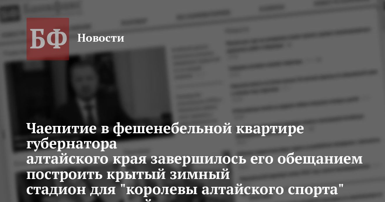 Чаепитие в фешенебельной квартире губернатора алтайского края завершилось его обещанием построить крытый зимный стадион для «королевы алтайского спорта» татьяны котовой. обещание просуществовало не более 5 минут, после чего бесследно исчезло.