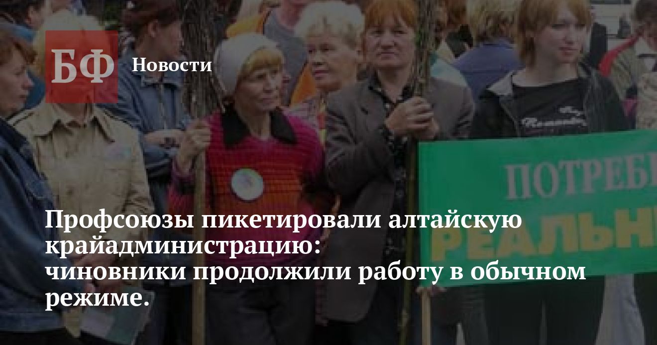 Утром 10 июня у здания Алтайской краевой администрации в рамках общероссийской акции профсоюзов прошел пикет профсоюзных