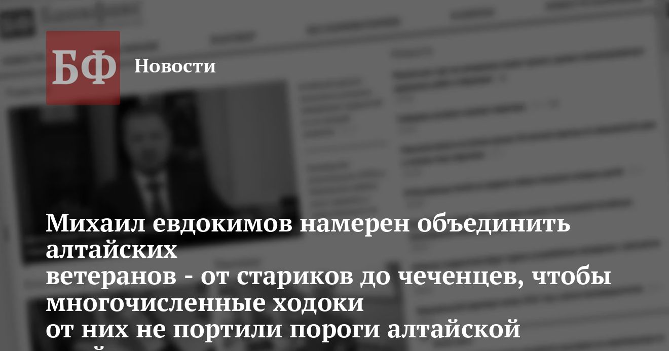 Михаил евдокимов намерен объединить алтайских ветеранов — от стариков до чеченцев, чтобы многочисленные ходоки от них не портили пороги алтайской крайадминистрации.