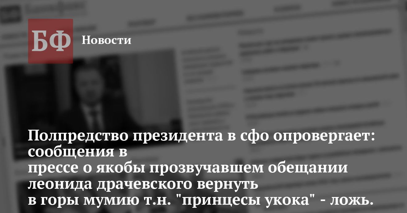 сказал полпред. «Откуда у журналистов появилась информация о передаче мумии в Республику Алтай, нам неизвестно», — сообщили в полпредстве.