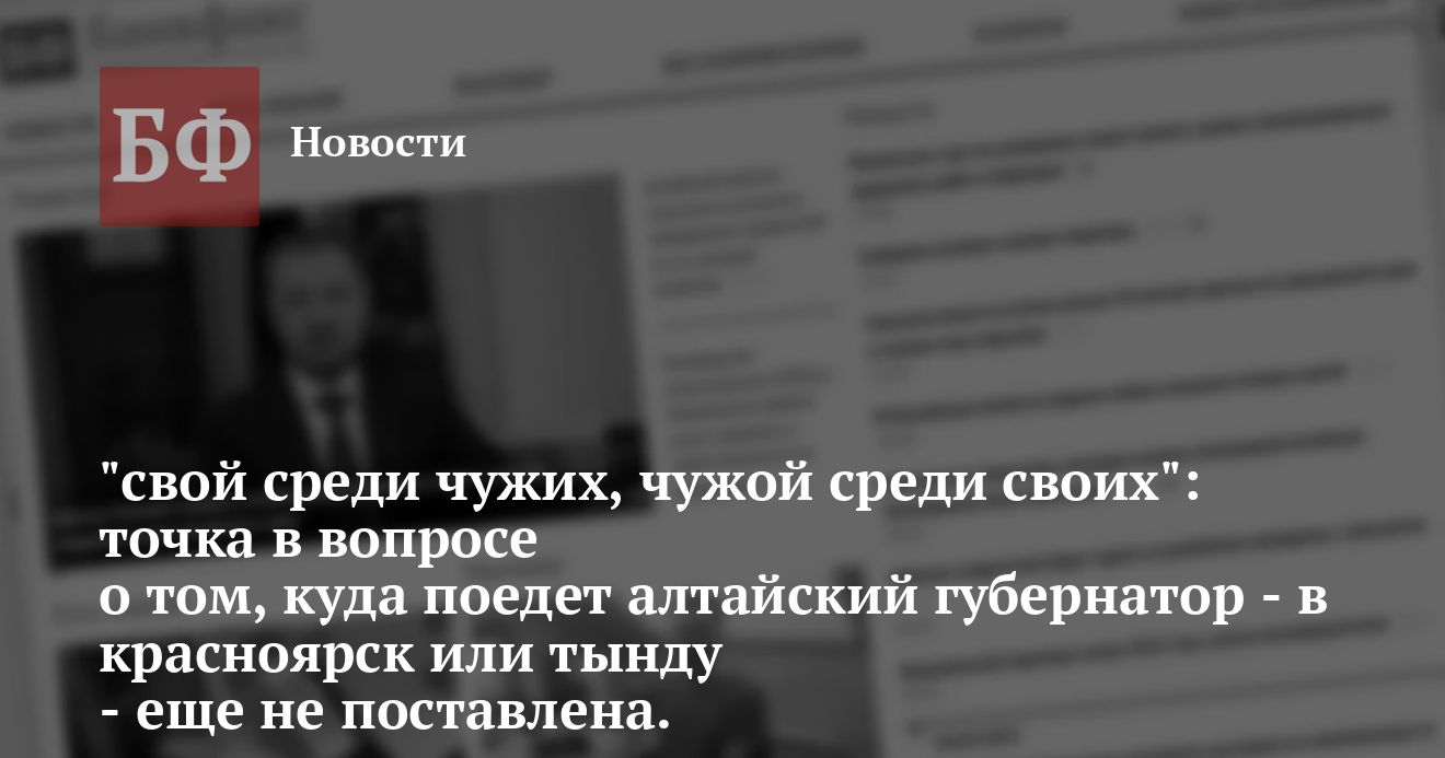 «свой среди чужих, чужой среди своих»: точка в вопросе о том, куда поедет алтайский губернатор — в красноярск или тынду — еще не поставлена.