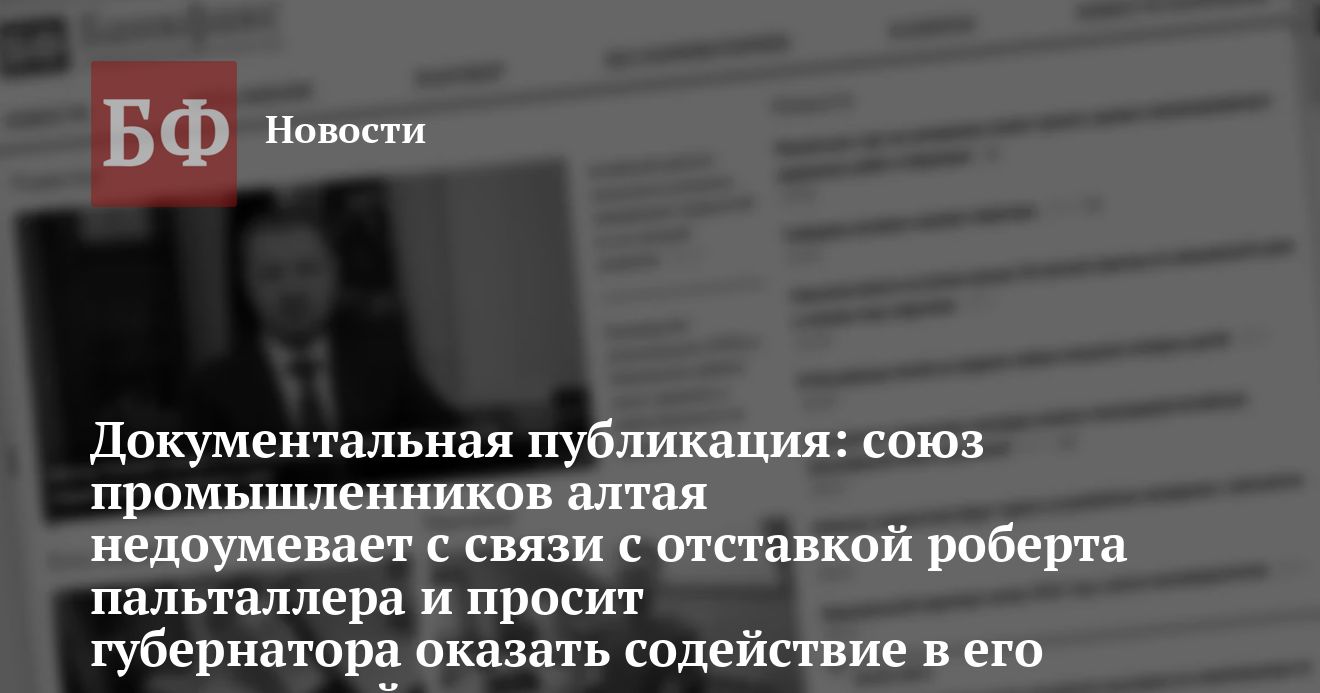Неожиданно для Союза промышленников (работодателей) Алтайского края 6 июля 2004 г. освобожден от занимаемой должности генеральный директор ОАО «Барнаульский ликеро-водочный завод» Пальталлер Роберт Робертович. Освобождение произведено по инициативе ОАО «Росспиртпром», обладающим контрольным пакетом акций БЛВЗ.