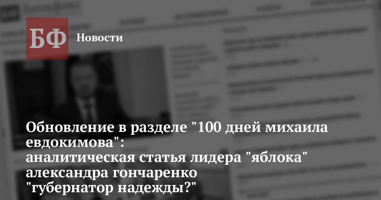 партии «Яблоко» Александра Гончаренко «Губернатор надежды?». С текстом статьи можно ознакомиться