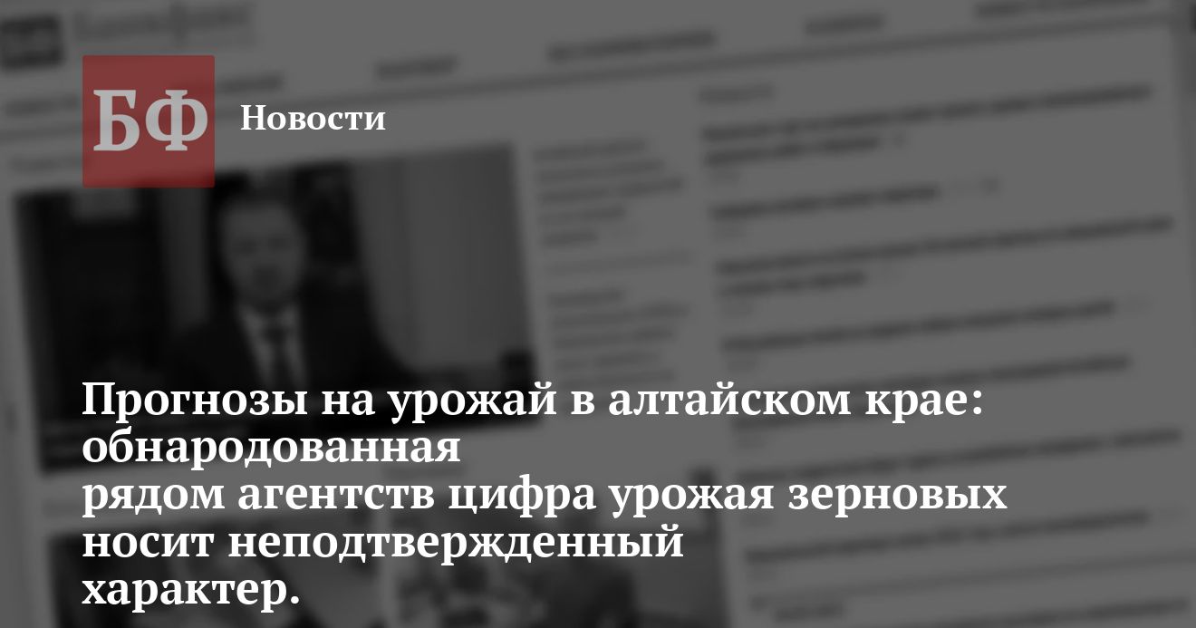 агентств был опубликован прогноз — в Алтайском крае намерены