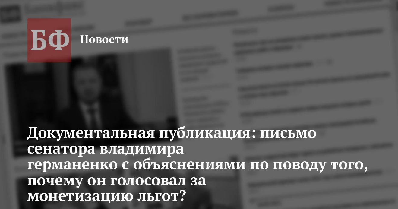 в Совете Федерации за монетизацию льгот. Приводим текст письма