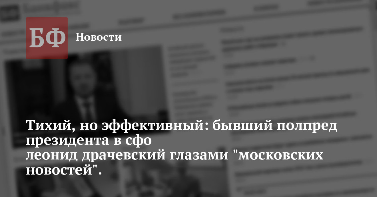 Пост президентского полпреда покинул Леонид Драчевский — один из немногих подлинных политиков в этой ветви федеральной власти