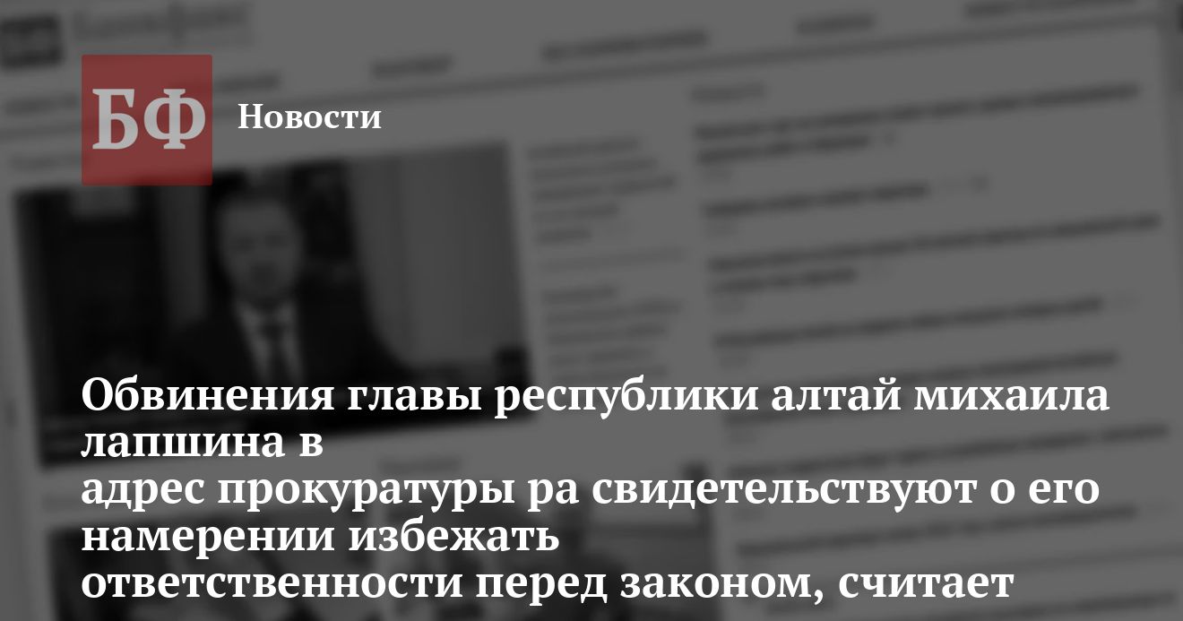 интервью Лапшина, главы Республики Алтай, которого привлекают к уголовной ответственности. Он говорит, что прокуратура выполняет