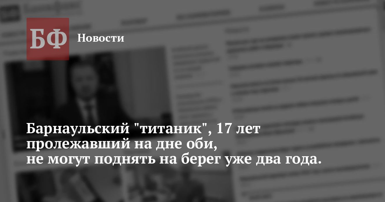 Барнаульский «титаник», 17 лет пролежавший на дне оби, не могут поднять на берег уже два года.