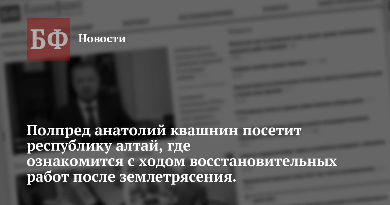 Полпред анатолий квашнин посетит республику алтай, где ознакомится с ходом восстановительных работ после землетрясения.