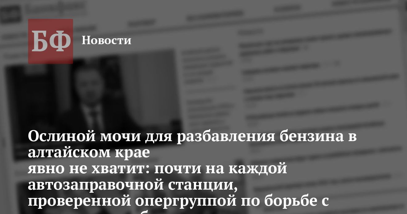 Ослиной мочи для разбавления бензина в алтайском крае явно не хватит: почти на каждой автозаправочной станции, проверенной опергруппой по борьбе с незаконным оборотом нефтепродуктов, выявлены нарушения.