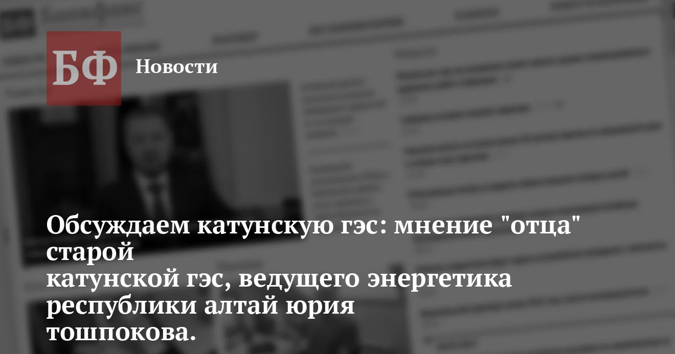 Как оценивают перспективы реализации нового проекта А. Пигалёва специалисты, работающие в области энергетики? Редакция «P.S.» решила обратиться за комментариями к инженеру-энергетику Юрию ТОШПОКОВУ, который работал в конце 80-х годов директором Катунской ГЭС и знаком с проблемой, что называется, изнутри. Вот его мнение: