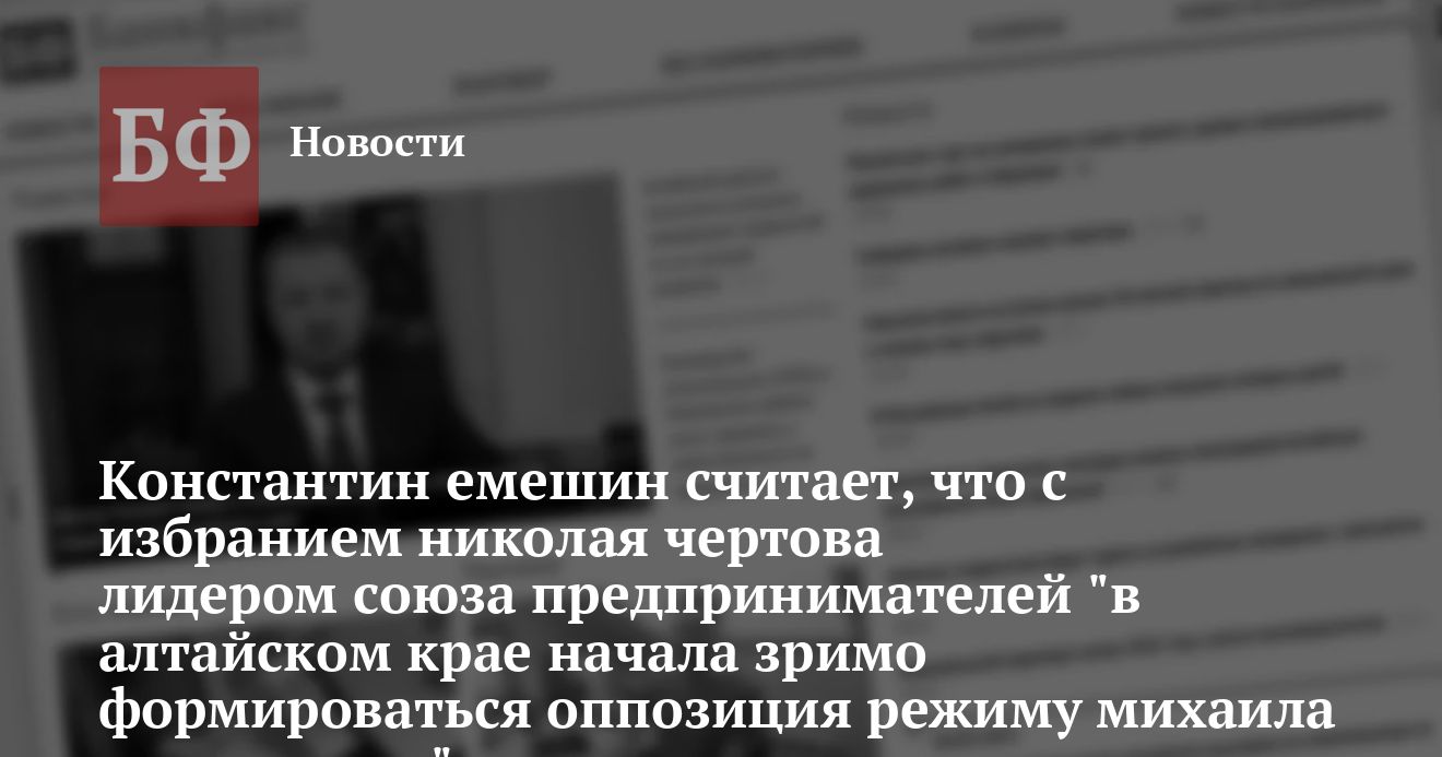 В этой ситуации начал новый виток своей политической жизни — решил прибрать к своим рукам «Союз предпринимателей», тем более что исполнительным директором этой организации является его давнишний поклонник Эдуард Черченко. Кроме этого неуклюжие действия новой администрации во взаимодействии с предпринимательским сообществом вызвали протест и поэтому предприниматели решили, что в этих условиях политический опыт Н.Чертова может быть им полезен. Во-вторых, попытка открыто участвовать в этой конференции председателя комитета новой администрации Зуева не увенчалась успехом. Тем самым была подчеркнута оппозиционность этого собрания действующей исполнительной власти. Депутатский корпус был представлен не председателем комитета краевого Совета Юрием Шамковым (избран по спискам «Единой России»), а его заместителем Павлом Нестеровым (избран по спискам левого блока «За наш Алтай»). Следовательно ни у кого не вызывает сомнение, что избрание Чертова это еще и определенная заявка на политическую ориентацию «Союза предпринимателей».