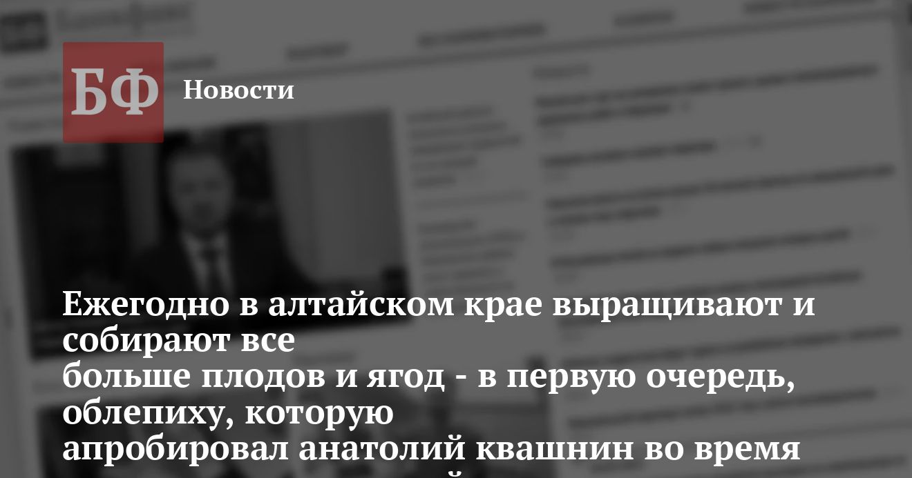 Ежегодно в алтайском крае выращивают и собирают все больше плодов и ягод — в первую очередь, облепиху, которую апробировал анатолий квашнин во время своего визита на алтай.