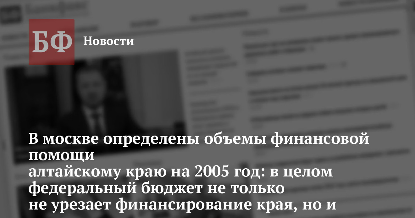 согласованы основные цифры финансовой помощи Алтайскому краю в 2005 году. По мнению депутата, в основном они удовлетворяют