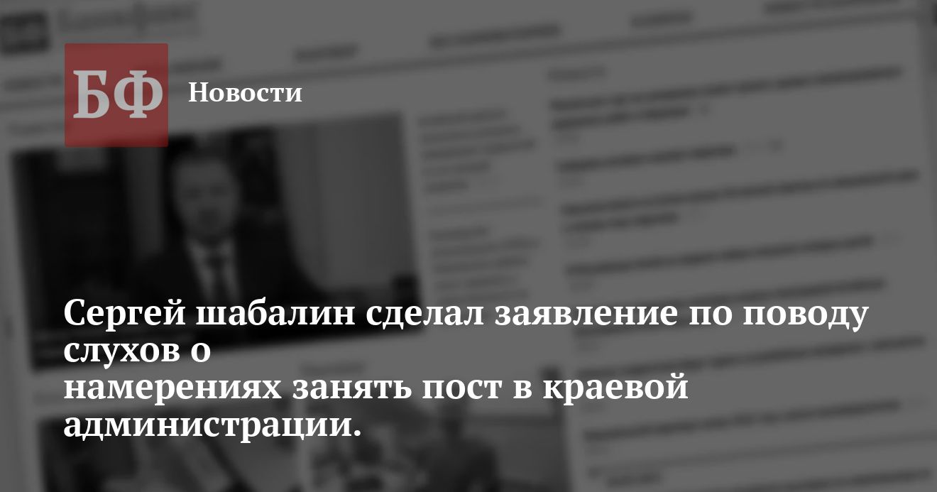 пост первого заместителя главы администрации края в мой адрес не поступало," - сообщил нам Сергей Шабалин.