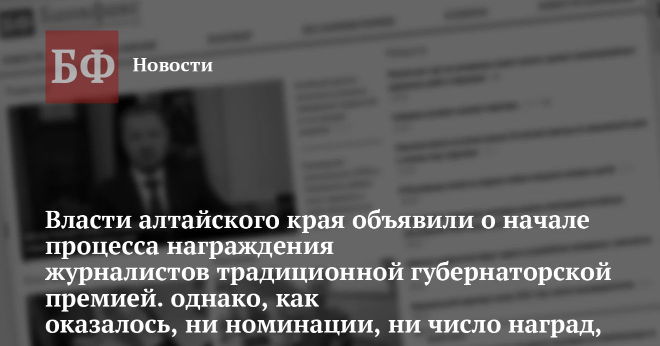 7 декабря пресс-служба администрации Алтайского края объявила о начале процесса награждения региональных журналистов т.н.