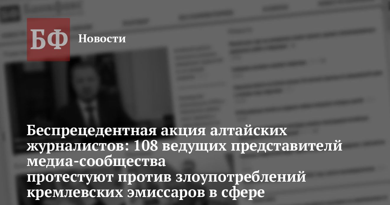 Мы, журналисты средств массовой информации Алтайского края, заявляем решительный протест против попыток лиц, якобы тесно связанных с высшими чиновниками исполнительной власти, оказать беспрецедентное давление на местные СМИ.