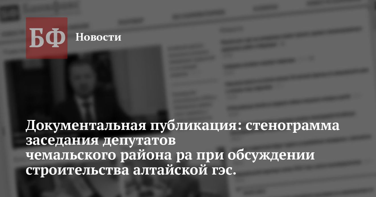 опубликована стенограмма дискуссии депутатов Чемальского района, на которой обсуждались проблемы, связанные с проектом Алтайской ГЭС.
