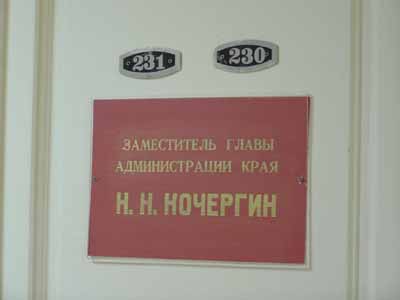 Кроме того, статус (правда, на этот раз — еще неофициальный) поднялся и у вице-губернатора Николая Кочергина. По некоторым данным, он теперь является «и.о. первого заместителя главы администрации края». Однако, как сообщили в крайадминистрации, никаких документов о назначении Кочергина «вторым первым» пока не поступало. Кроме того, кабинета своего вице-губернатор не менял и даже табличка на его дверях все еще остается прежней.