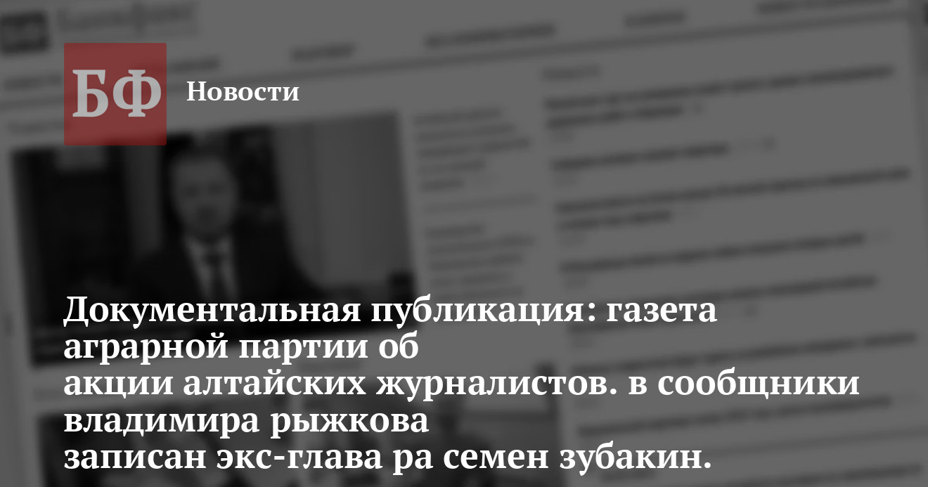 На сайте информагентства «Банкфакс» на днях появилось сообщение, что ведущие журналисты Республики Алтай присоединяются к коллегами из Алтайского края в акции протеста против давления на СМИ, организованной эмиссарами Кремля. Журналисты, как выясняется, выступают в поддержку депутата Госдумы Владимира Рыжкова.