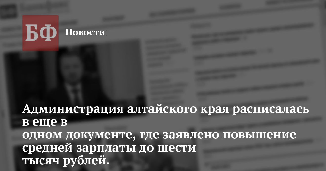 Администрация алтайского края расписалась в еще в одном документе, где заявлено повышение средней зарплаты до шести тысяч рублей.