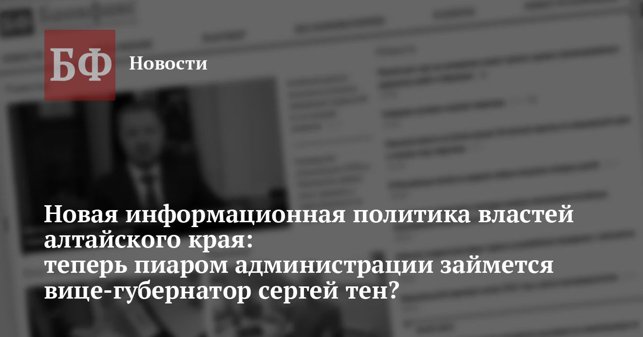 В последние недели в связи с чередой отставок и назначений в администрации Алтайского края возникла неясность — кто из руководителей региона будет курировать информационную и пиаровскую деятельность? Не смогли нам предоставить официальную