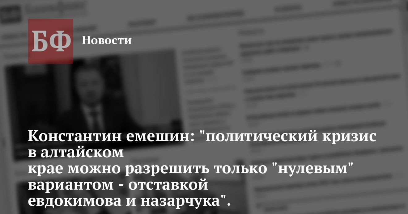 «Политический кризис на Алтае логически дошел до непримиримого противоречия: противостояние представительной и исполнительной власти, противостояние муниципальных элит и краевых, противоречия внутри исполнительной власти. Возможны два сценария развития событий: либо „война до победного конца“, либо второй вариант, на наш взгляд более благоприятный — это „нулевой вариант“, когда председатель краевого Совета Александр Назарчук и губернатор Михаил Евдокимов оба подадут в отставку».