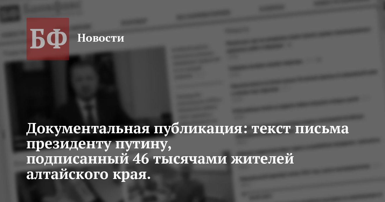 Мы, жители Алтайского края, молодые и пожилые, горожане и селяне, те, кому дорога судьба края и своих семей, обращаемся к Вам — чтобы быть услышанными.