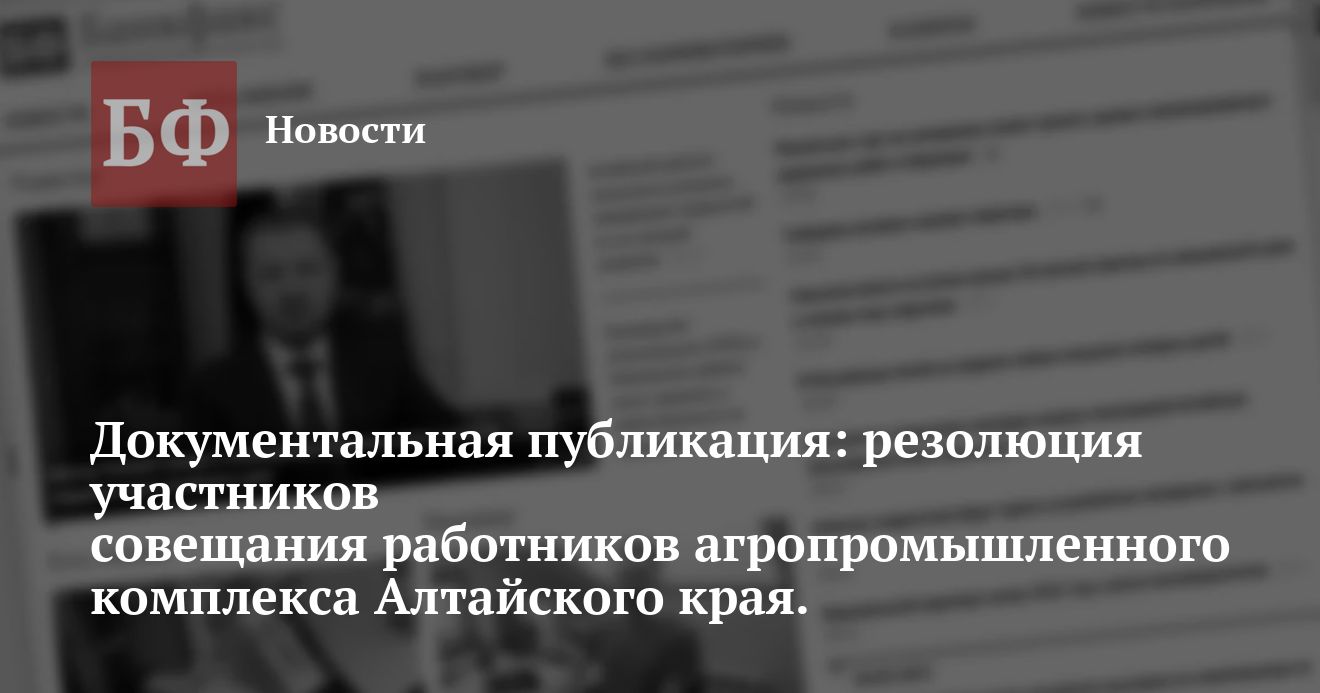 Предлагаем вашему вниманию текст резолюции, принятой на совещании работников агропромышленного комплекса Алтайского края