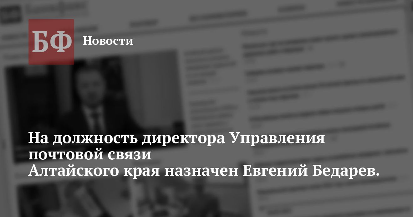 филиала ФГУП «Почта России» Евгения Бедарева, возглавлявшего до этого пост начальника Барнаульского почтамта. Предыдущий директор