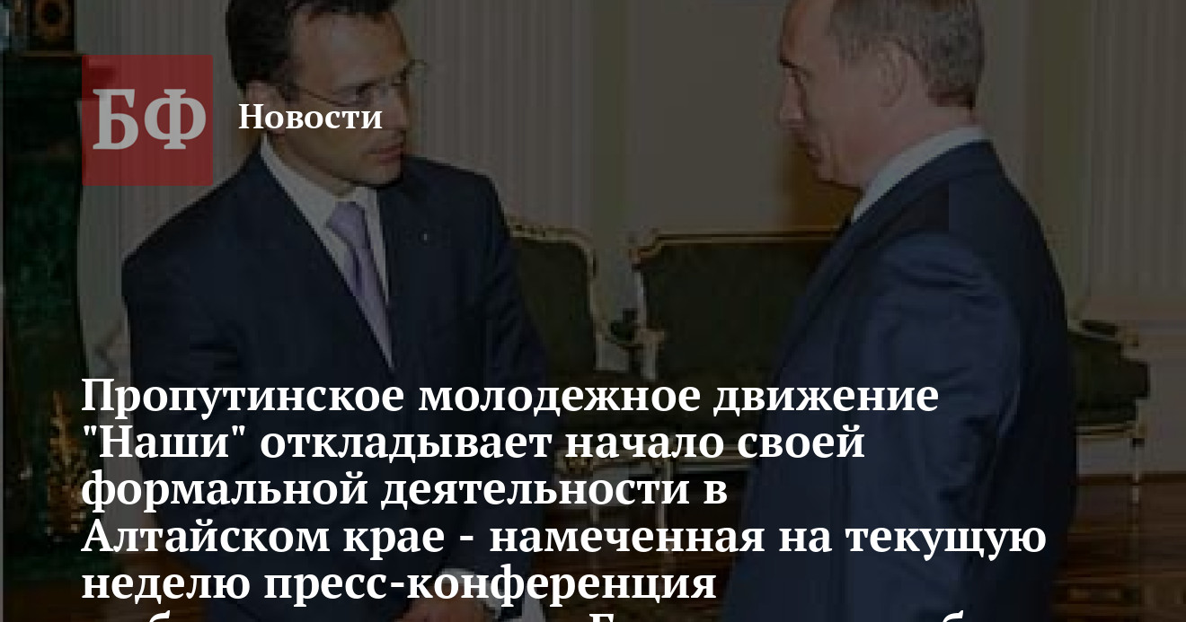 Тем не менее, сторонники «наших» на Алтае уверены, что сорванный визит в ближайшее время все-таки воспоследует и пропутинское молодежное движение в получившем репутации оппозиционного путинскому режиму крае начнет свою деятельность.