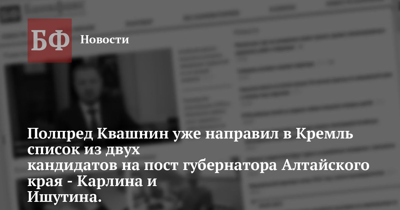 федерального округа (СФО) Анатолия Квашнина уже отправлен в Москву. В полпредстве от комментариев отказались. Пименов,
