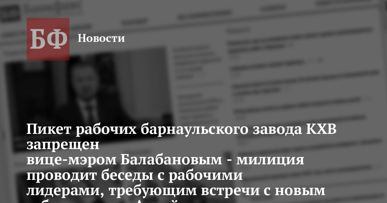 Пикет рабочих барнаульского завода КХВ запрещен вице-мэром Балабановым — милиция проводит беседы с рабочими лидерами, требующим встречи с новым губернатором Алтайского края, угрожая разогнать протестантов дубинками.