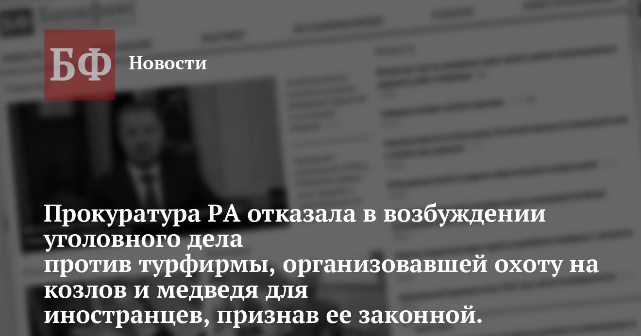 15 сентября 2005 г. в прокуратуру Республики Алтай поступило обращение руководителя управления федеральной службы по ветеринарному и фитосанитарному надзору по Алтайскому краю и Республике Алтай. Из текста данного обращения следует, что 07 сентября 2005 года в Республике Алтай задержана группа иностранных туристов из Германии в количестве трех человек вместе с директором турфирмы ООО «Агуна» — Л.Н. Самаевой. У задержанных обнаружено три единицы охотничьего оружия с нарезным стволом, иностранного производства и незаконно добытые охотничьи трофеи: два черепа сибирского горного козла с рогами и череп бурого медведя.