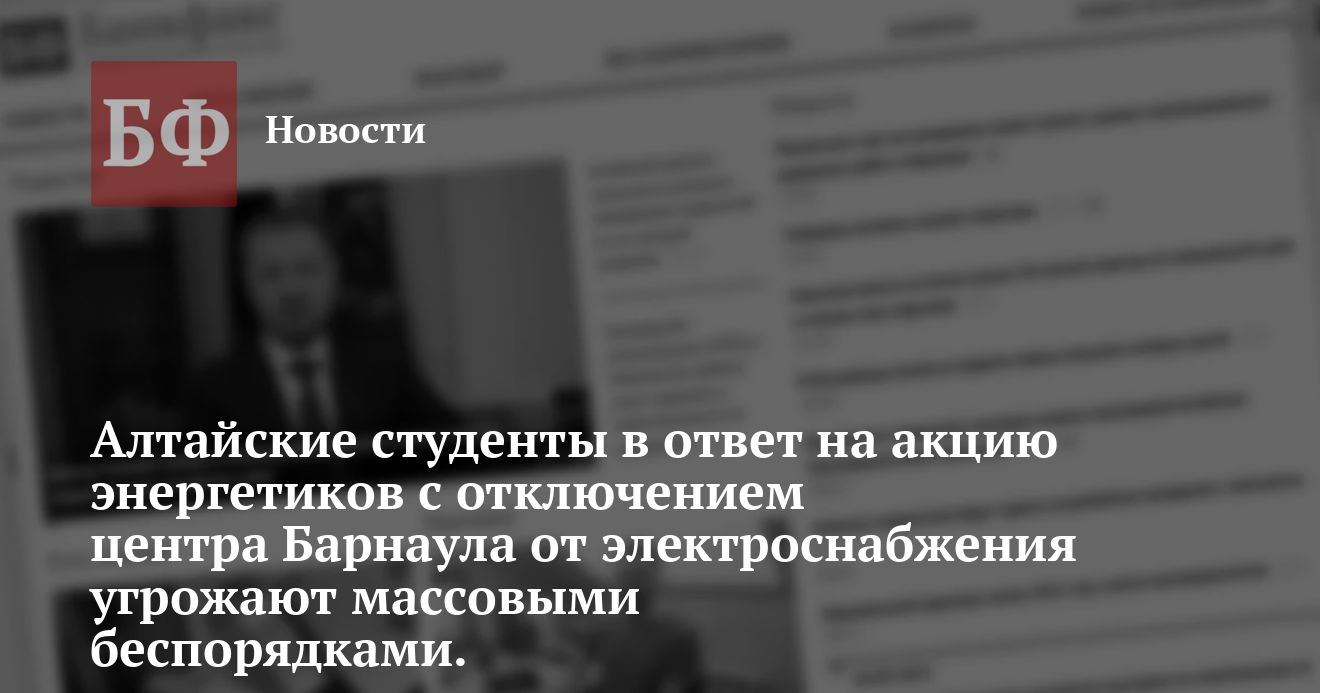 студентов Алтая распространил заявление, комментирующее ситуацию с отключением в Барнауле электроэнергии. Приводим его полный