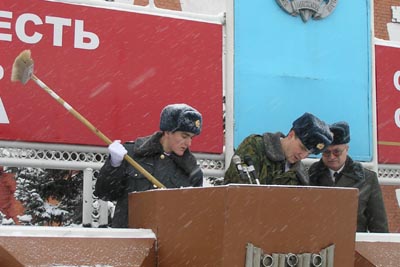 Поднявшись на трибуну, губернатор сказал свое приветственное слово, зачитал приказ президента.