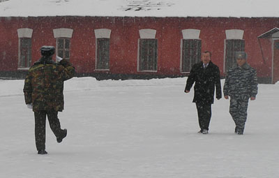 Строго по расписанию начальник института Владимир Третьяков и губернатор Александр Карлин появились на плацу.